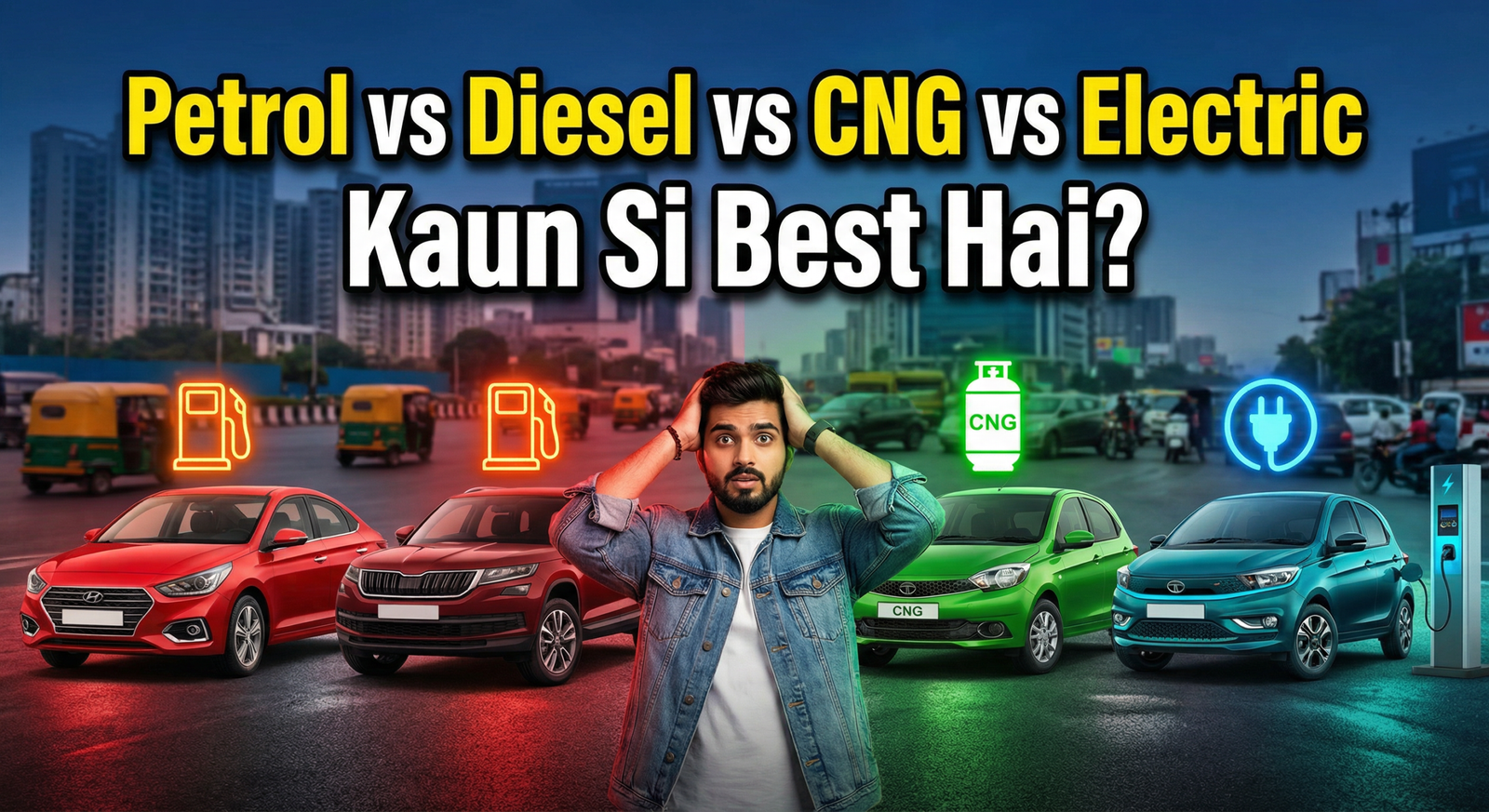 जब भी कोई नई गाड़ी खरीदने जाता है, तो सबसे पहले यही confusion होती है — Petrol लूँ या Diesel? CNG का क्या? और यह Electric वाली तो हर जगह दिख रही है, वो कितनी practical है? हर showroom में अलग बात बताई जाती है, हर YouTube video में कोई अलग expert अपनी राय दे रहा है।